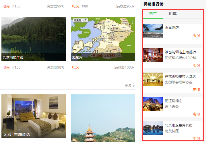 此處默認顯示線路、酒店、租車3個欄目的產品,按更新的先后順序倒序排序(最新更新的產品顯示在最前面)