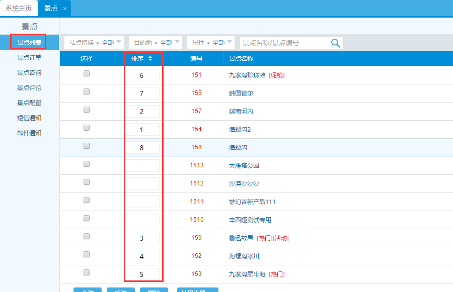 此版塊只展示景點、酒店、租車3個板塊,不可更改,產(chǎn)品排序按后臺的數(shù)字排序從小到大展示前8個開啟狀態(tài)的產(chǎn)品: