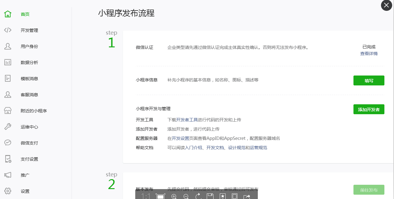 至此,小程序創建認證完成,如果是源碼部署,可從以下位置直接上傳源碼發布。如沒有技術能力想從思途中轉發布,請查看文章后面“第二步:登錄思途小程序管理中心進行綁定和管理”這一步!