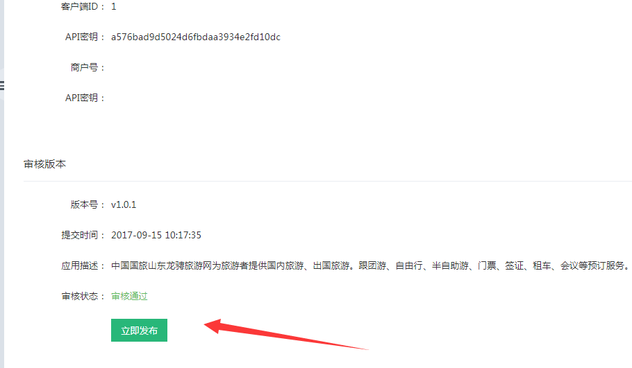 客戶端ID和api密鑰就是第二步將網站后臺生成: