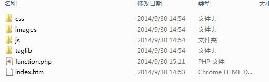其中,CSS為當(dāng)前模板使用的CSS樣式,images存儲(chǔ)相應(yīng)圖片,js存儲(chǔ)javascript文件,taglib存儲(chǔ)當(dāng)前模板可使用的標(biāo)簽,function.php里可定義當(dāng)前模板使用的函數(shù)公共文件,index.htm為模板文件(注意:index.htm為固定格式不能更改).