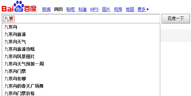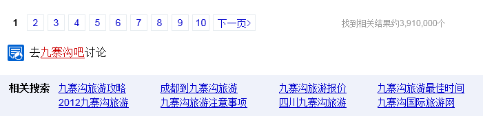 (1)利用百度搜索欄獲得相關關鍵詞 當我們輸入“九寨”時,百度會顯示出相關詞組,這些通常是“九寨”這個詞的相關關鍵詞,也就是我們要找的長尾關鍵詞。輸入不同關鍵詞時,就可以得到不同的長尾關鍵詞。