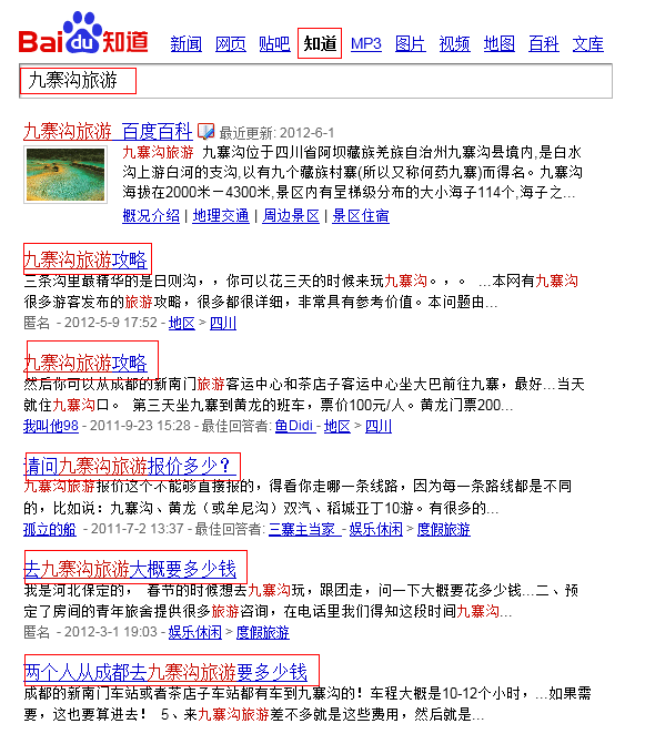 (2)經驗知識。如九寨溝旅游 與 黃龍旅游、牟尼溝旅游,(這三個目地常出現同一旅行程序安排中,因此相關是長尾關鍵詞)