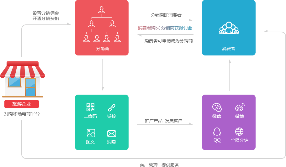 用戶通過多種分銷渠道,將產品分享、推廣給熟人和好友,賺取相應傭金,同時分銷商可通過分銷商店鋪功能,實現全站分銷